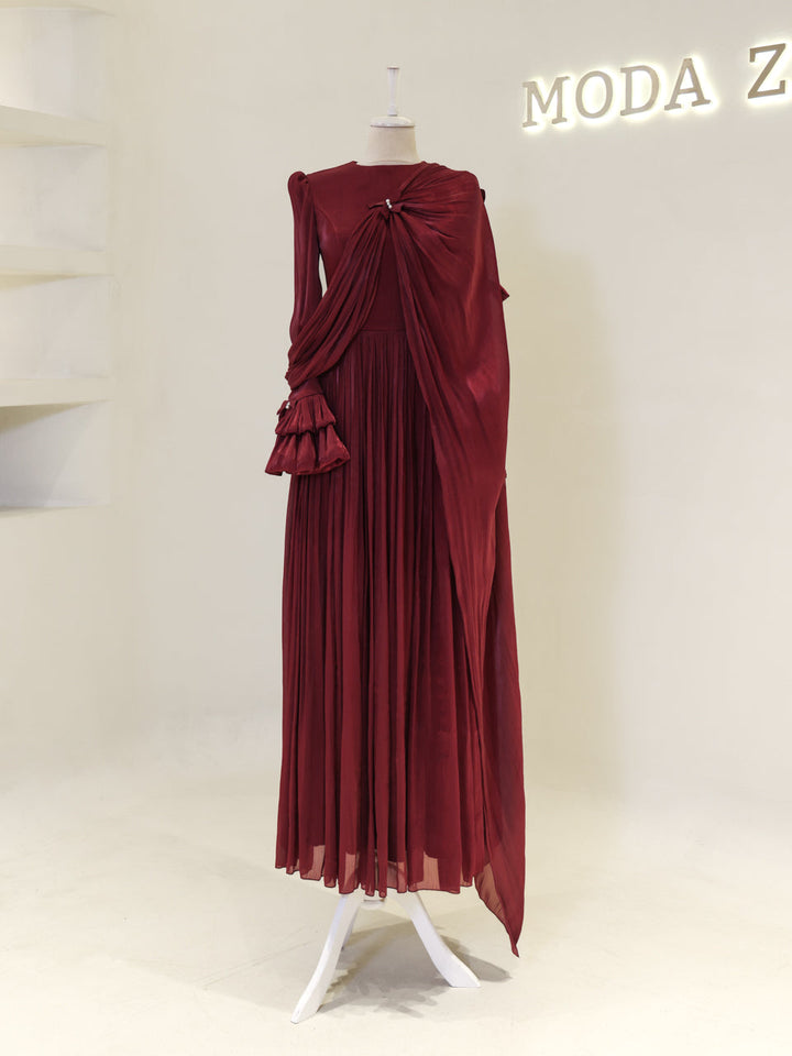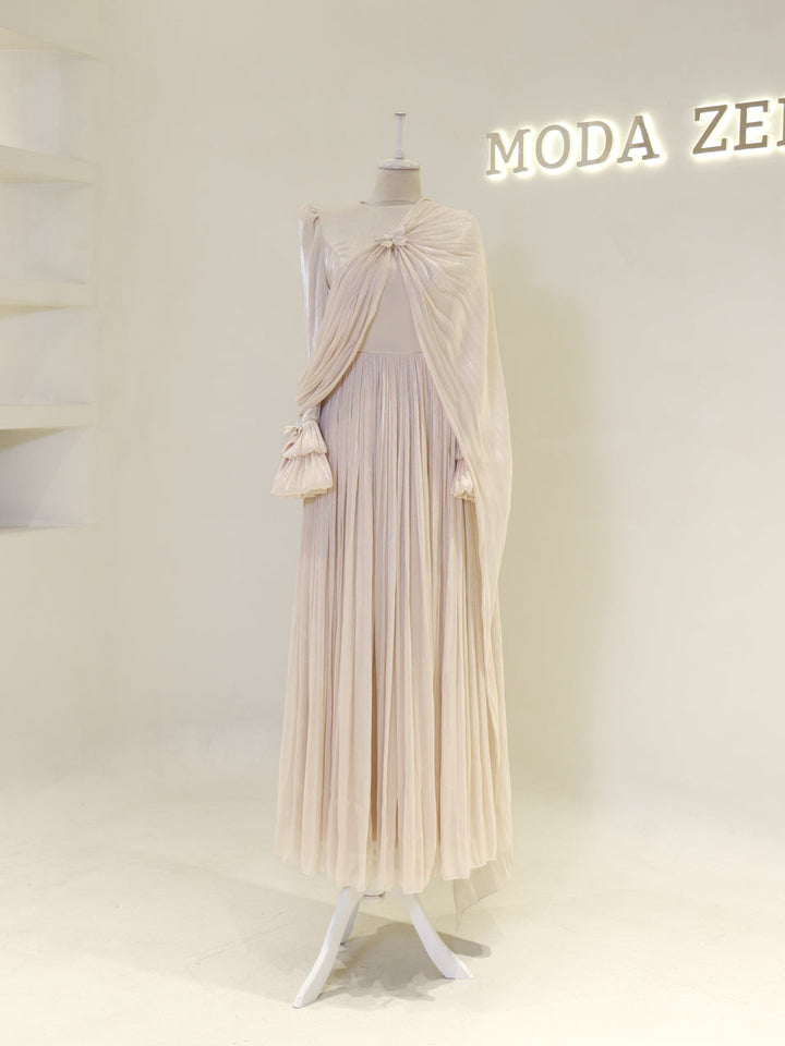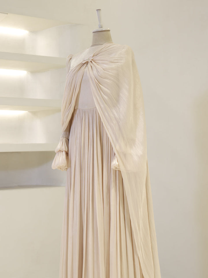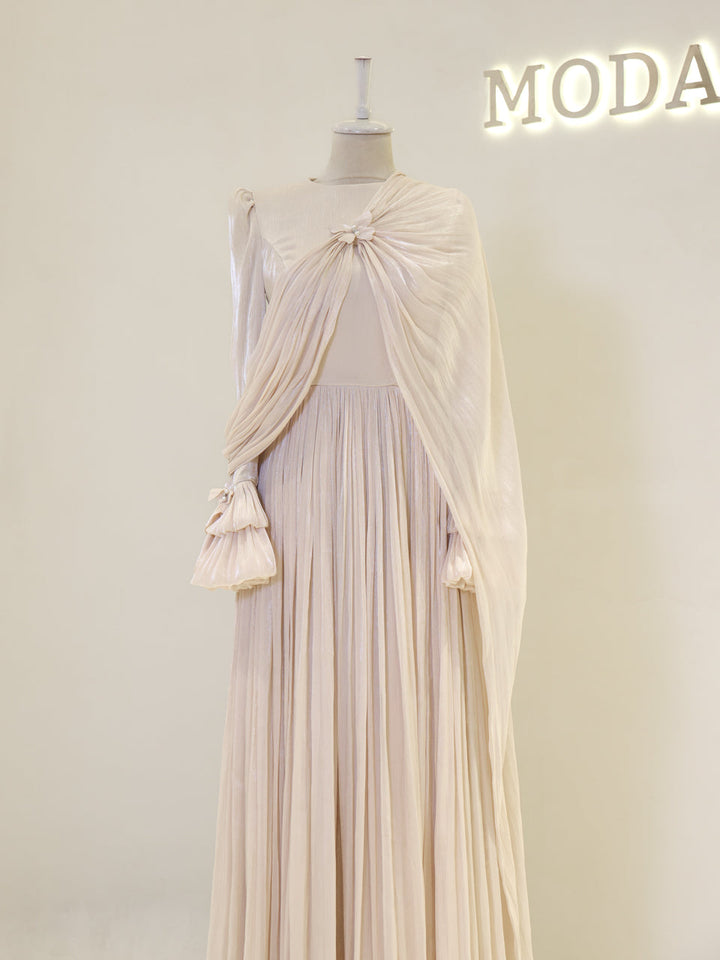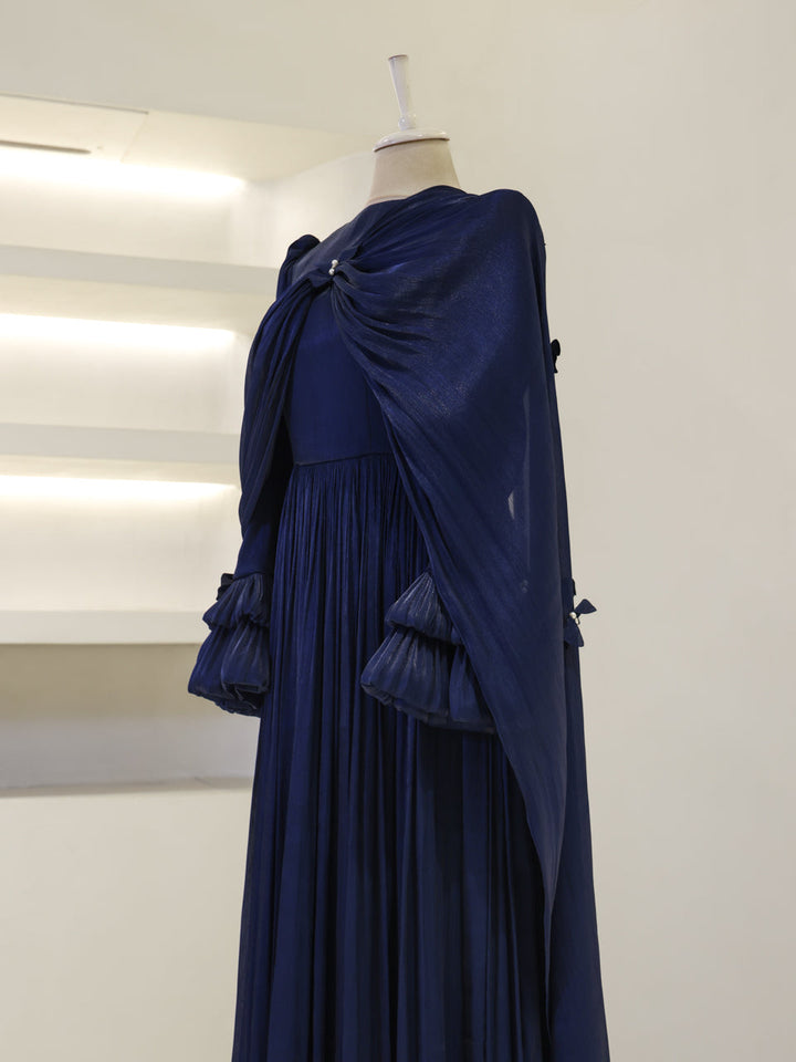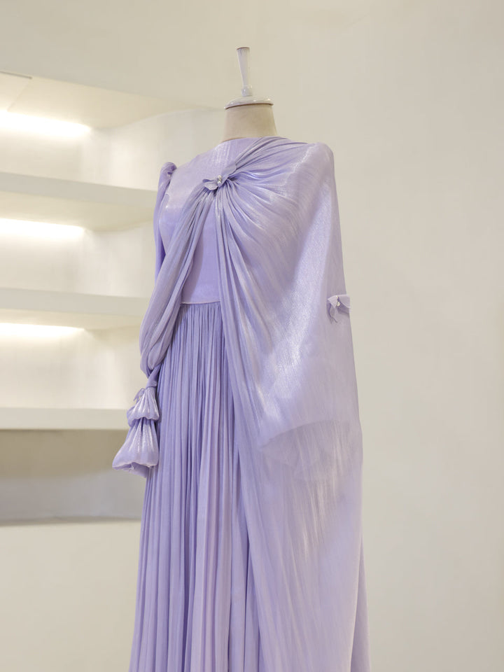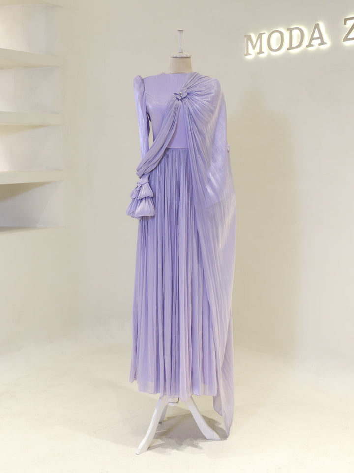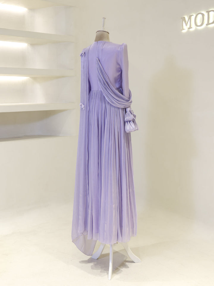 Ürün tam kalıptır Ürün boy 150 cm Orkide kumaştır Astarlıdır Arkadan fermuarlıdır İşlemeler yapıştırma değildir Manşetleri lastiklidir Sol omuzdan etek ucuna inen pelerin detayı mevcuttur Kloş etek formundadır