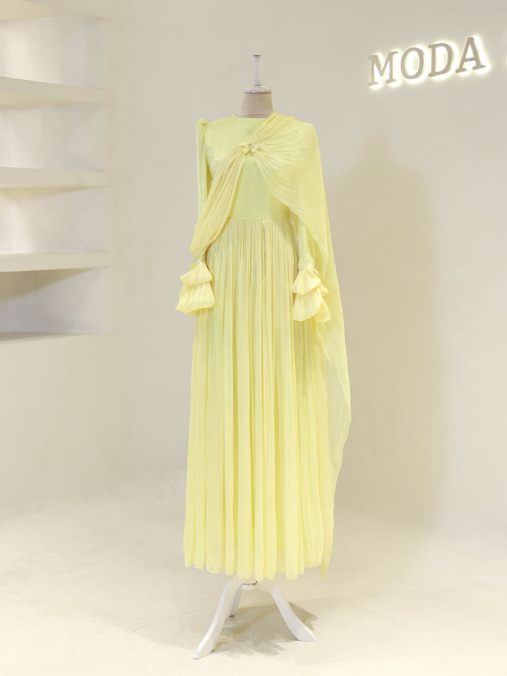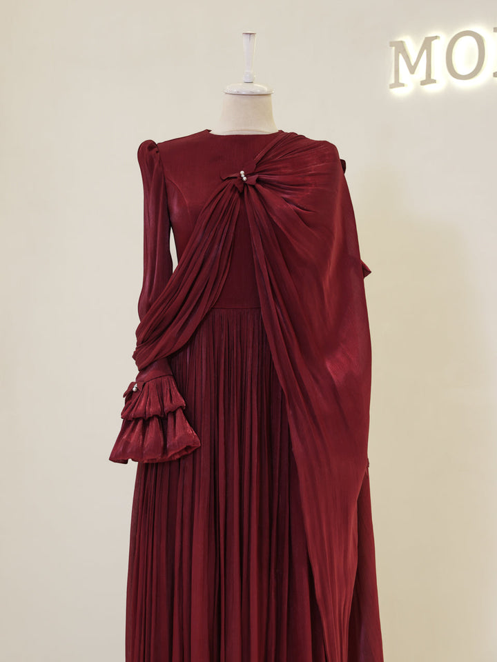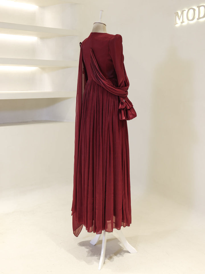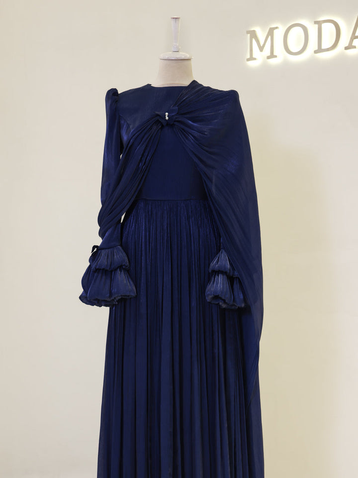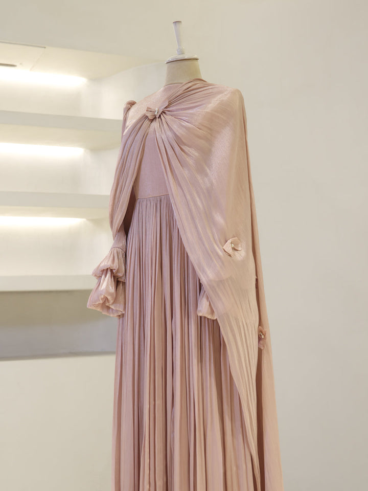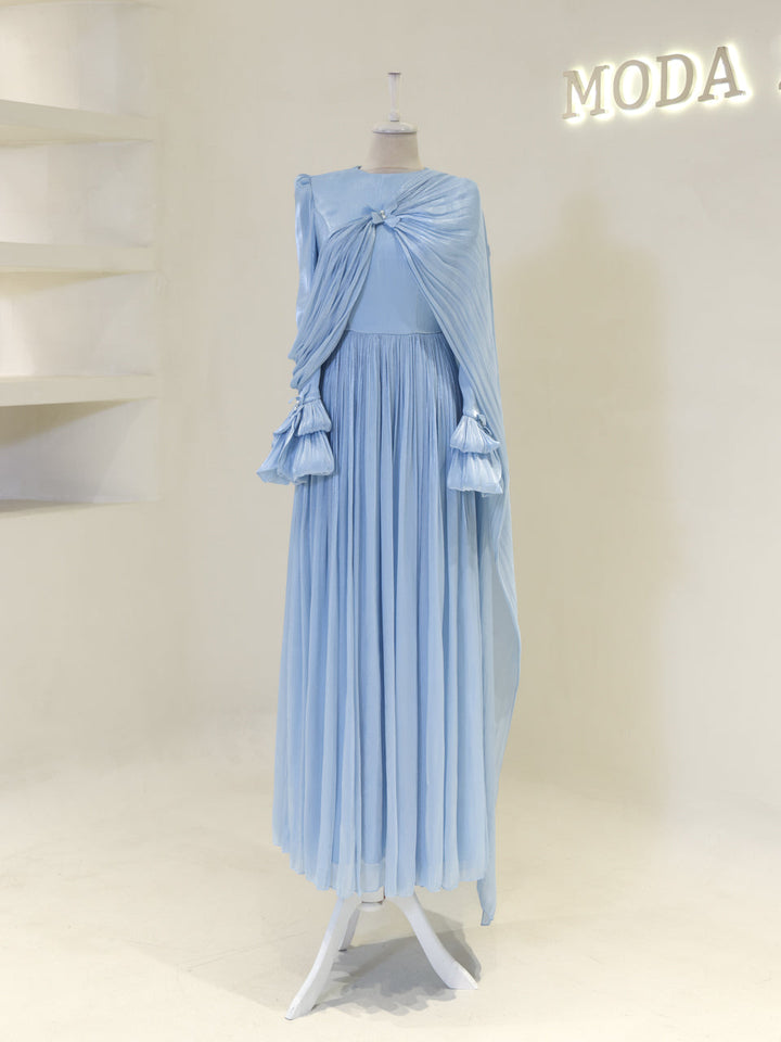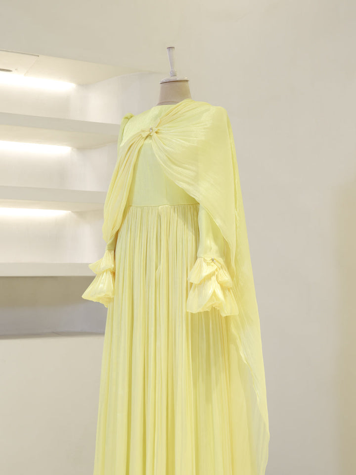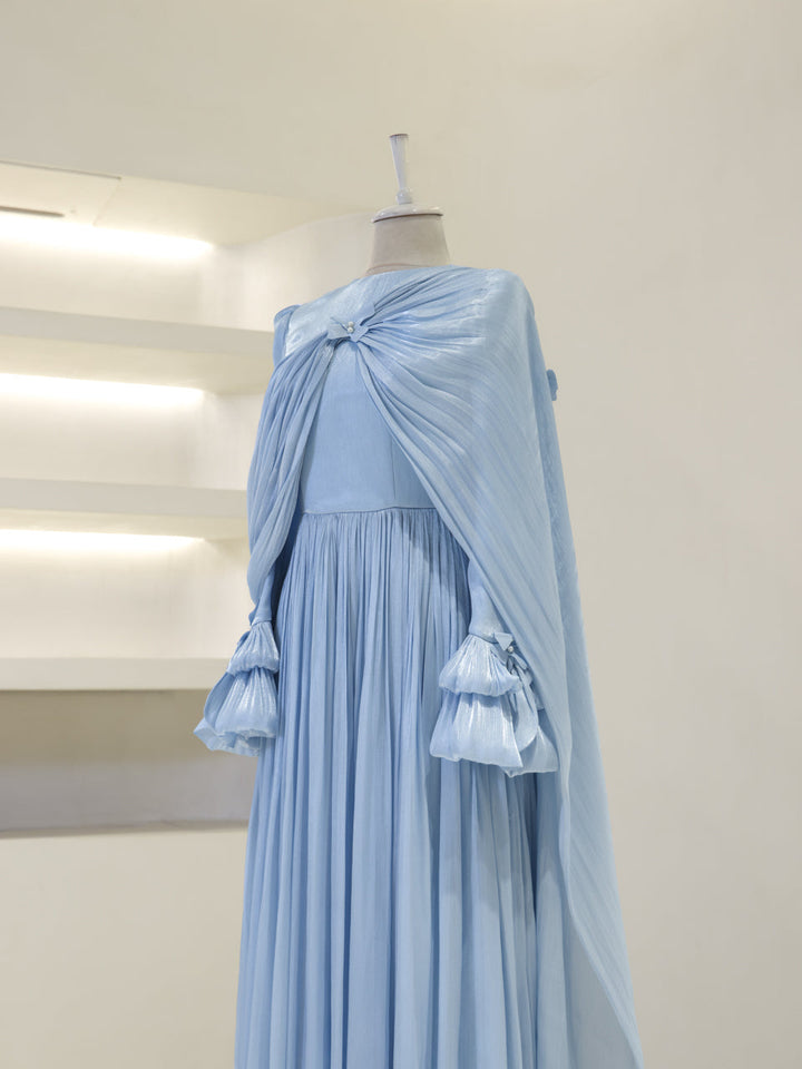 Ürün tam kalıptır Ürün boy 150 cm Orkide kumaştır Astarlıdır Arkadan fermuarlıdır İşlemeler yapıştırma değildir Manşetleri lastiklidir Sol omuzdan etek ucuna inen pelerin detayı mevcuttur Kloş etek formundadır