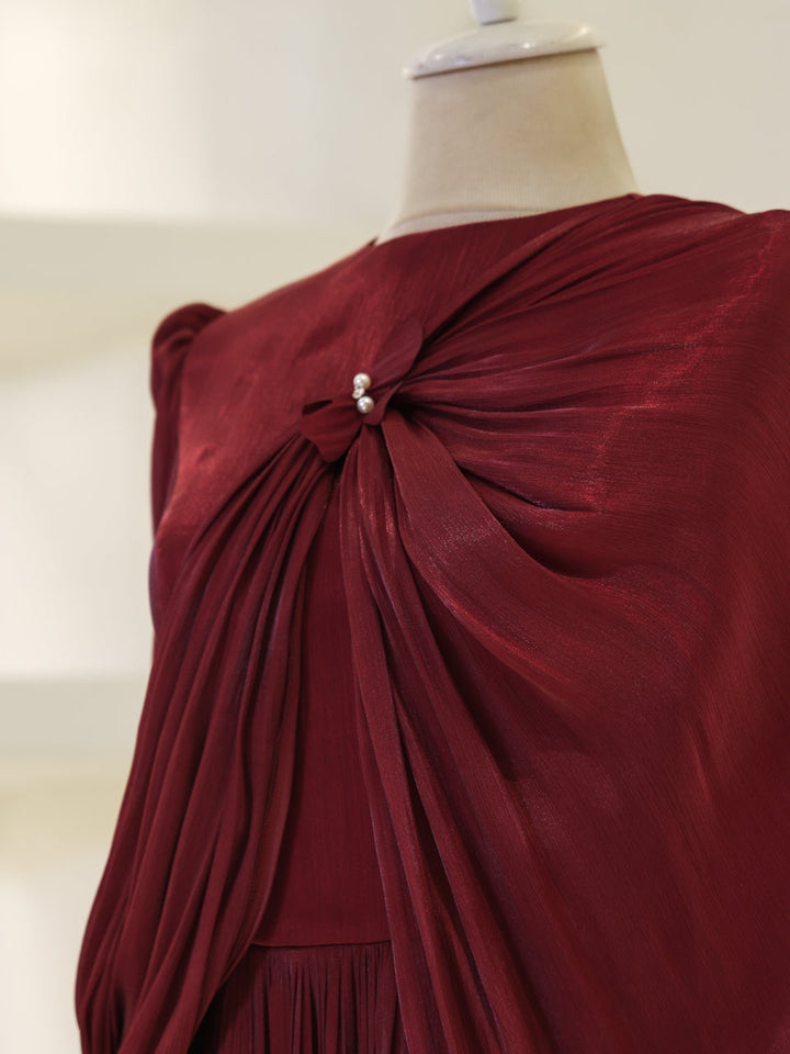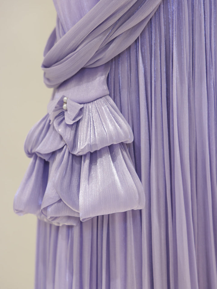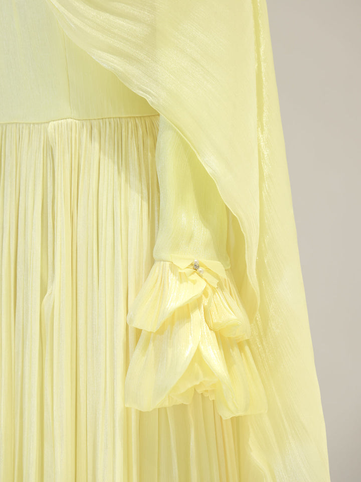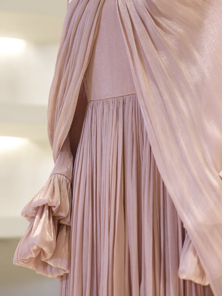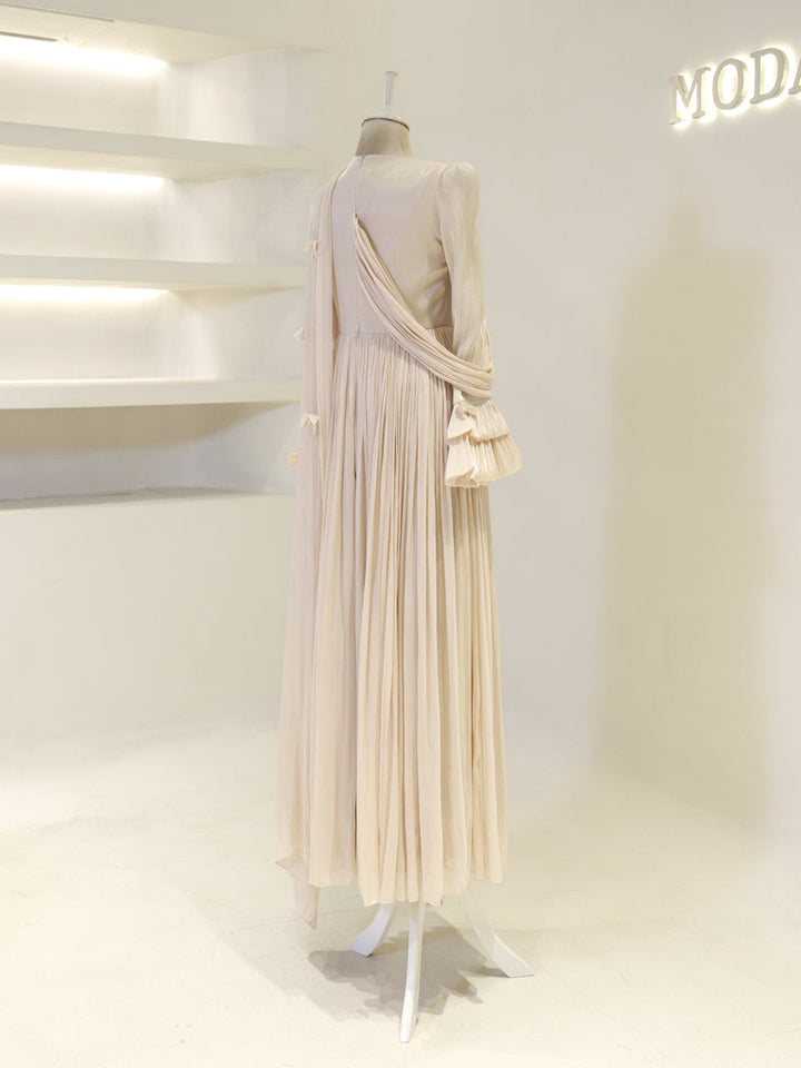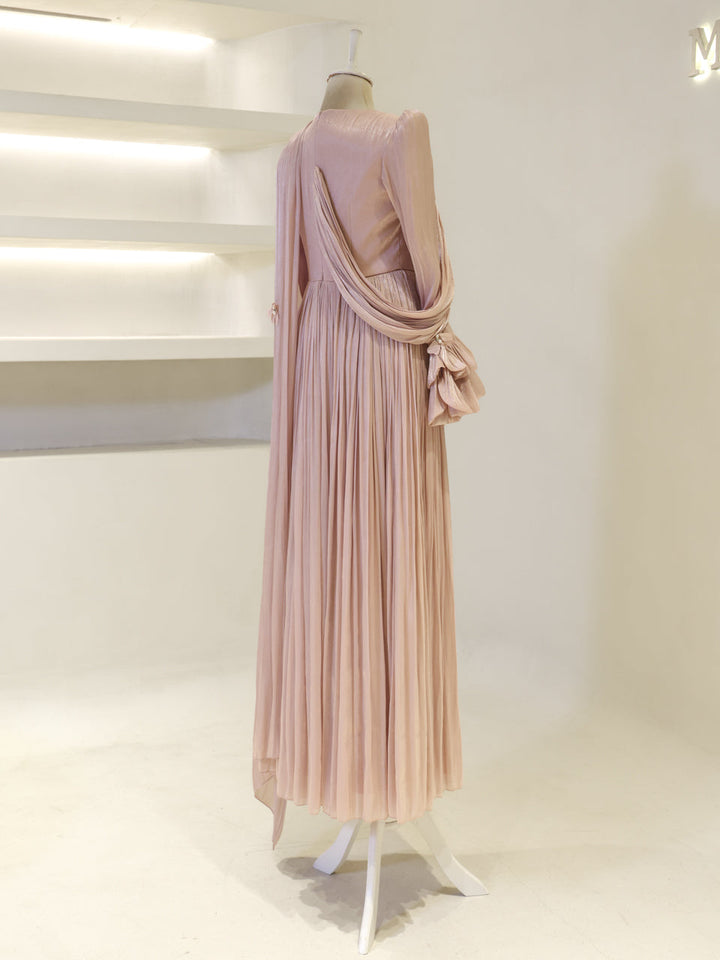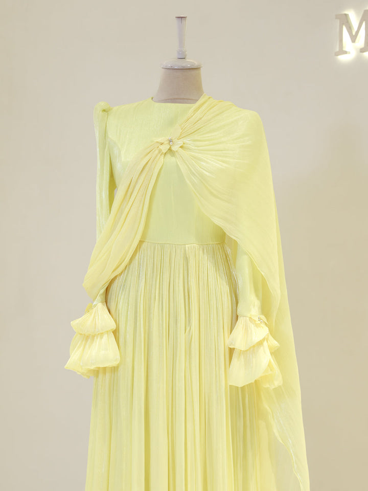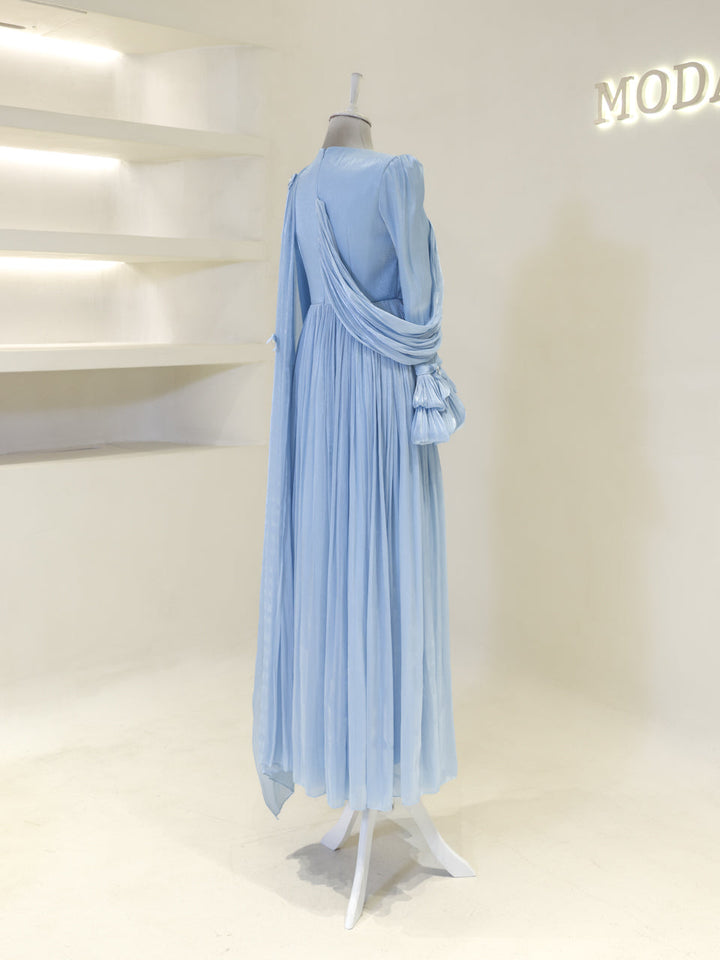 Ürün tam kalıptır Ürün boy 150 cm Orkide kumaştır Astarlıdır Arkadan fermuarlıdır İşlemeler yapıştırma değildir Manşetleri lastiklidir Sol omuzdan etek ucuna inen pelerin detayı mevcuttur Kloş etek formundadır