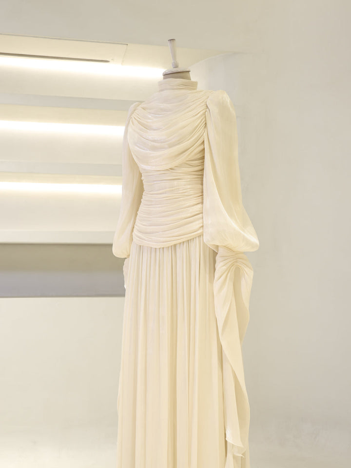 Ürün tam kalıptır Ürün boy 150 cm Orkide kumaştırAstarlıdırGöğüs pedi yokturArkadan fermuarlıdırManşetler bağcıklıdırDüz etek formundadır